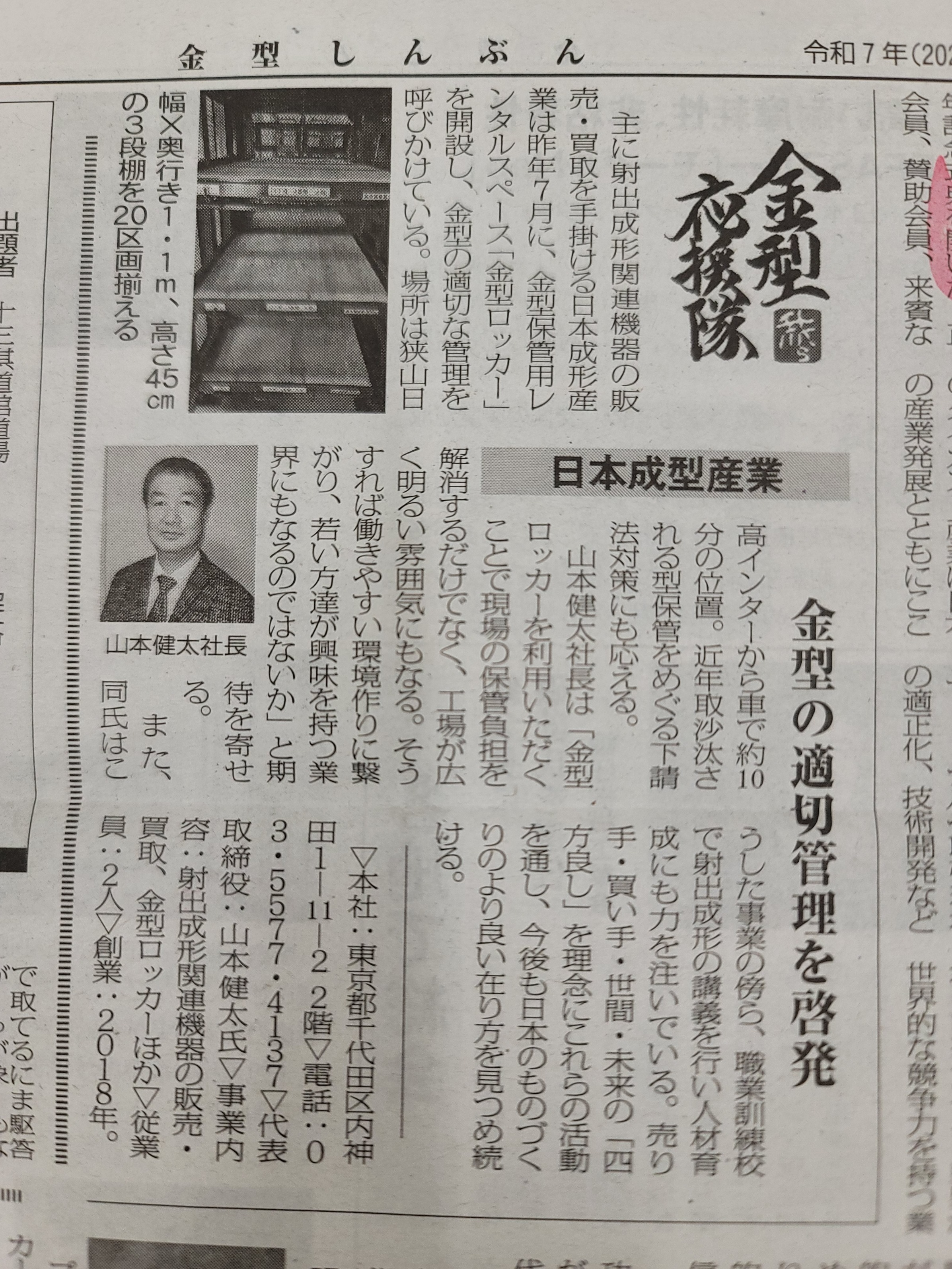 ・2025年04月:日本経済新聞埼玉版(2025年4月1日版)に弊社の「金型ロッカー」に関係する記事が掲載されました。